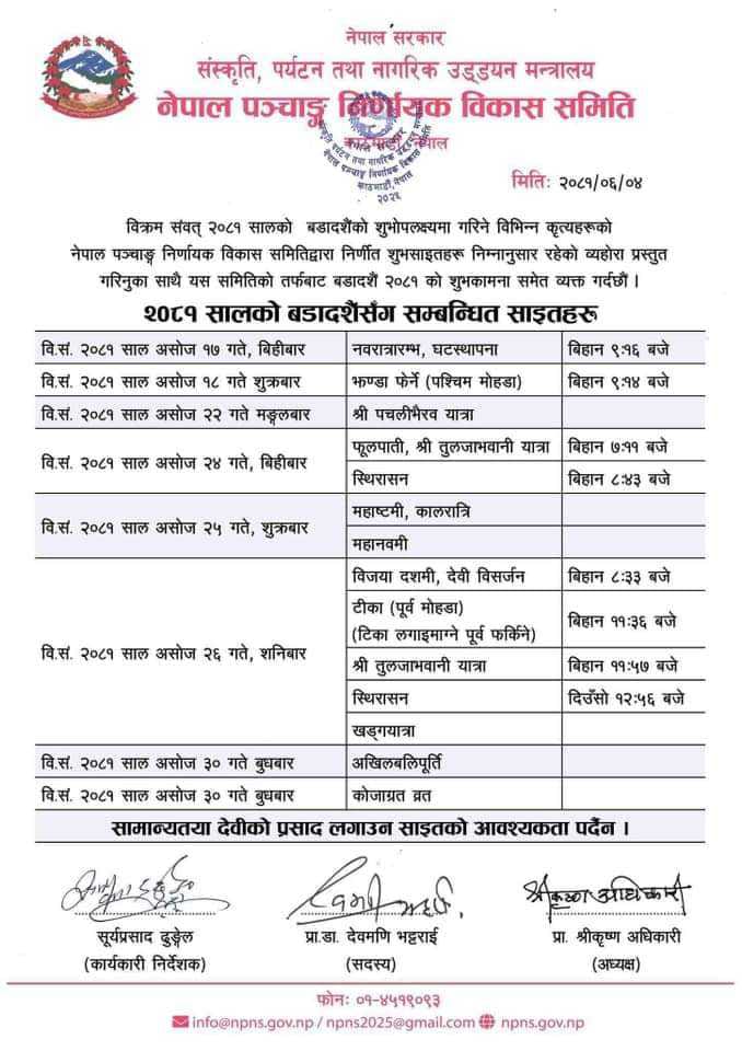 यस्तो छ यो बर्षको बडादशैंको शुभसाईत