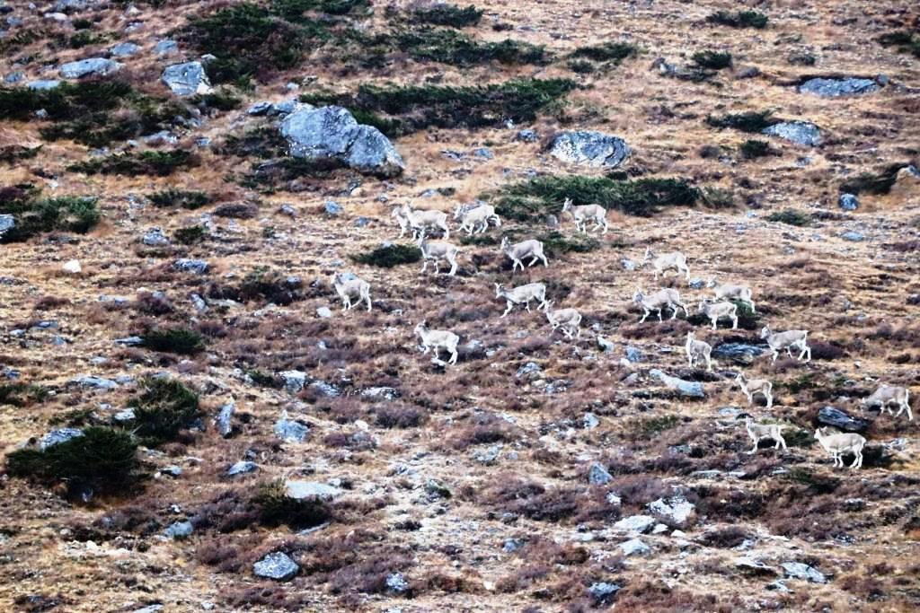 ताप्लेजुङको फक्ताङलुङ गाउँपालिका—५ स्थित कञ्चनजङ्घा संरक्षण क्षेत्रअन्तर्गतको कुम्भकर्ण हिमाल क्षेत्रमा देखिएका नाउर (वन भेडा)। उच्च हिमाली क्षेत्रमा पाइने नाउर दुर्लभ हिउँचितुवाको प्रमुख आहार हो। यस क्षेत्रमा हिउँचितुवा र नाउर दुबैको उपस्थिति रहेको छ । तस्बिरः दिलकुमार लिम्बू/रासस