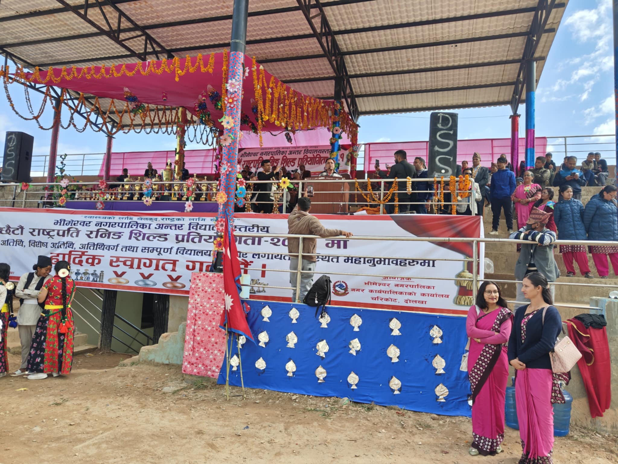 दोलखाः सदरमुकाम चरिकोटमा भीमेश्वर नगर स्तरीय राष्ट्रपति रनिङ्ग शिल्ड प्रतियोगिताको उद्घाटन गरिएको छ । आज एक समारोहका विच बागमती प्रदेशका आर्थिक मामिला मन्त्री कुन्दनराज काफ्लेले प्रतियोगिताको उद्घाटन गर्नु भएको हो ।