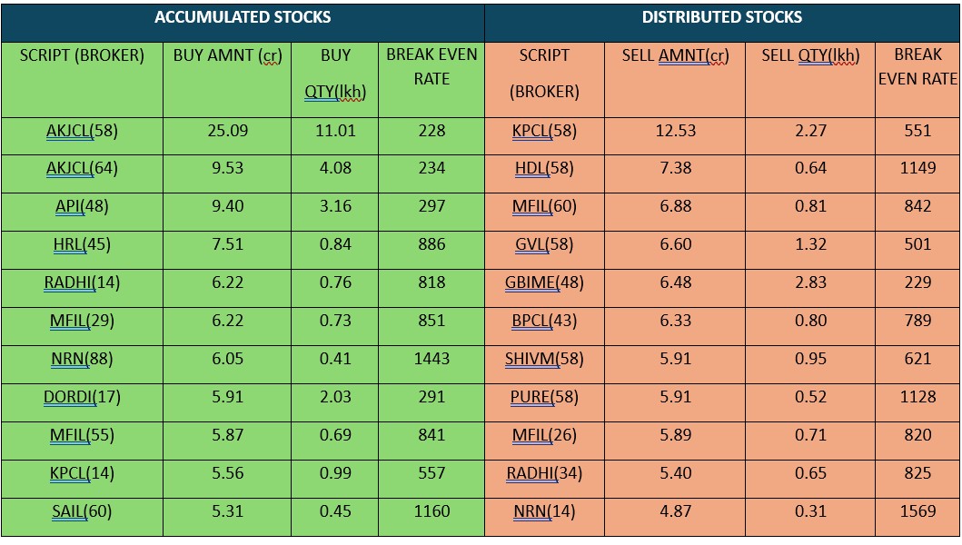 TOP 10 BROKERWISE ACCUMULATED AND DISTRIBUTED STOCKS
