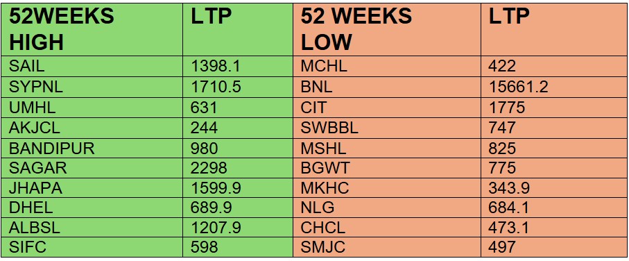 SAIL led the top gainers list, rising by NPR 298.1 (+27.1%), while TSHL fell by NPR 102.00 (-11.3%).