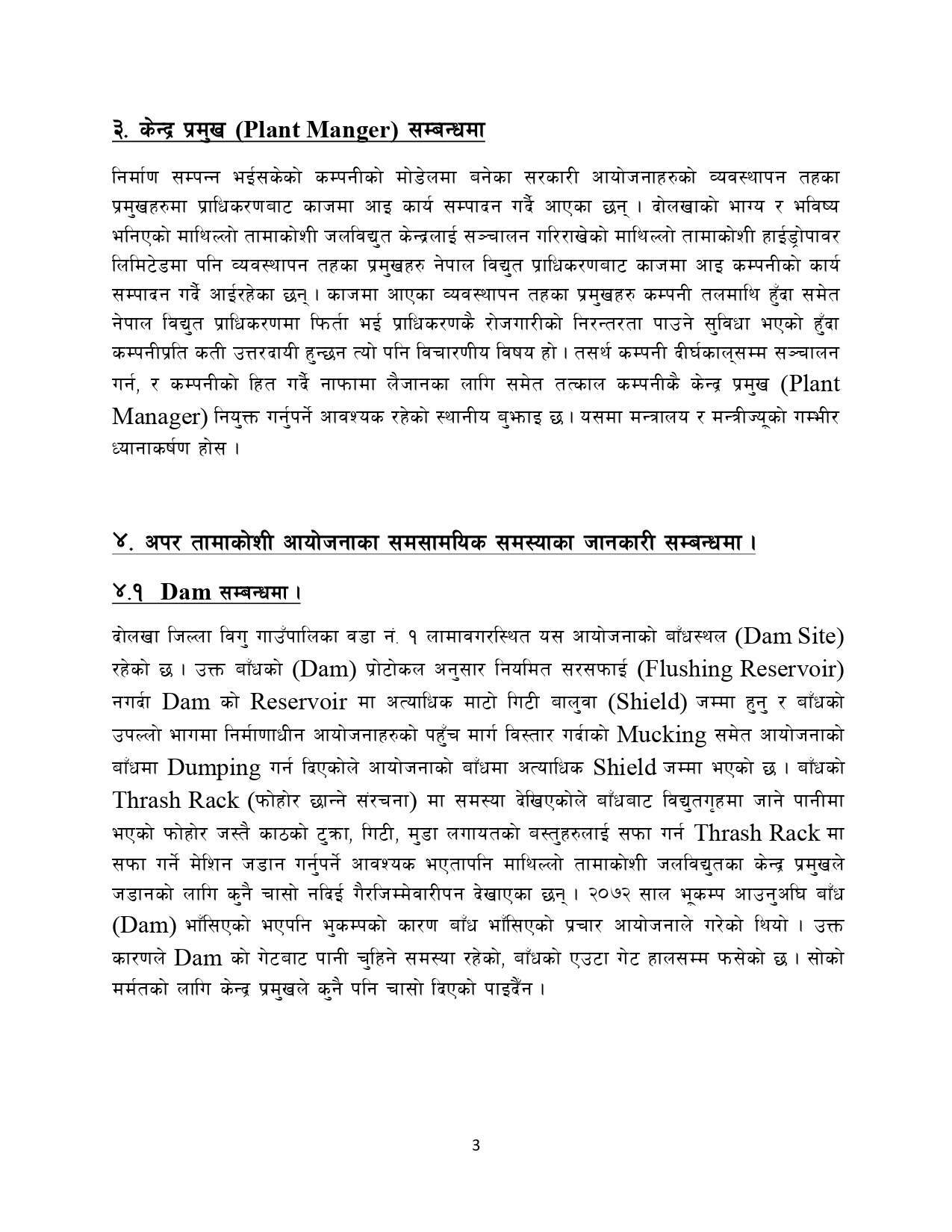 ज्ञापनपत्र लिँदै मन्त्री खड्रकाले वर्तमा सरकार मूलुकमा उर्जाको विकास गरी गरिव र विपन्न वर्गको जीवनस्तर उकास्न लागि परेको बताउनुभयो । स्थानीयलाई साथमा लिएर अगाडि बढ्ने सरकारको नीति रहेको उहाँको भनाई रहेको थियो ।